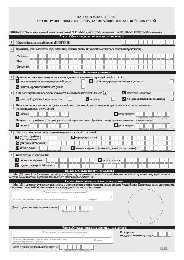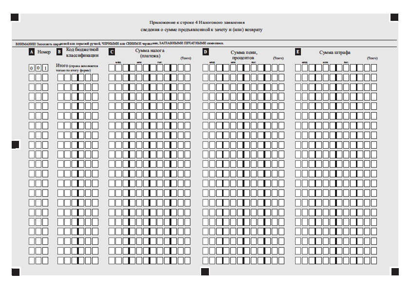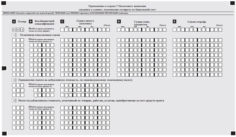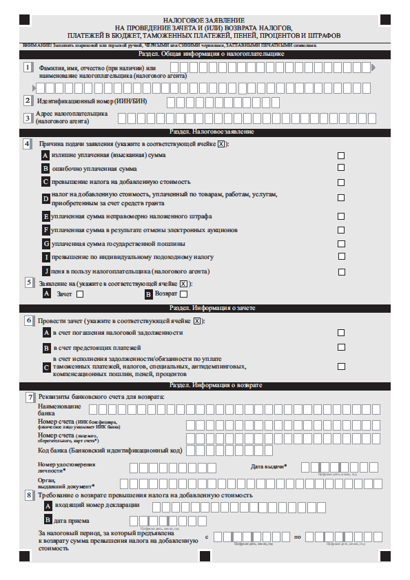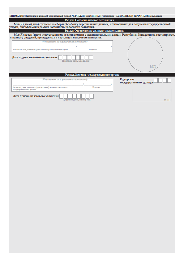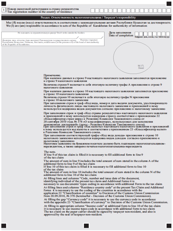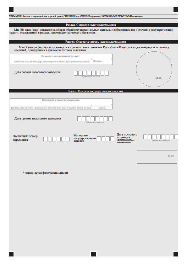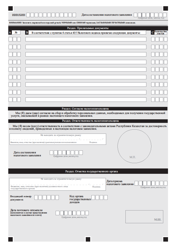 налоговое заявление по форме, согласно приложению к настоящему стандарту государственной услуги.