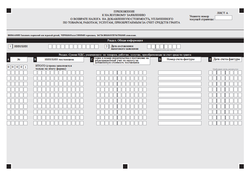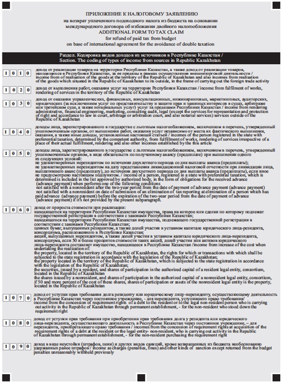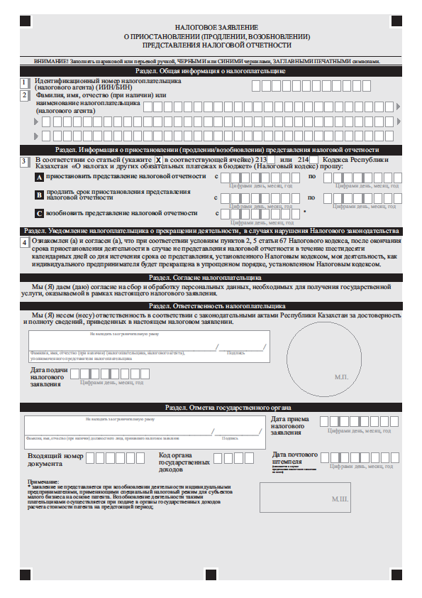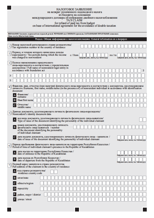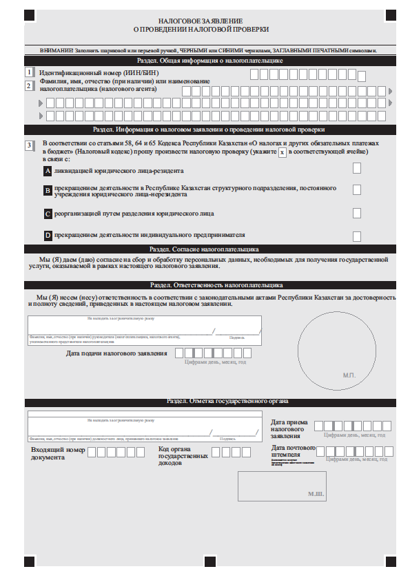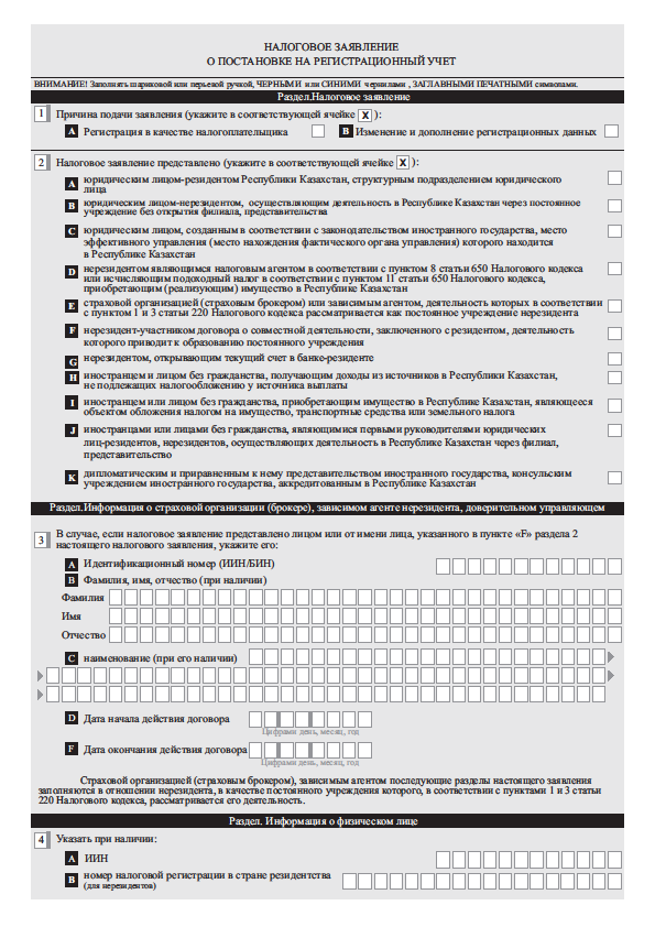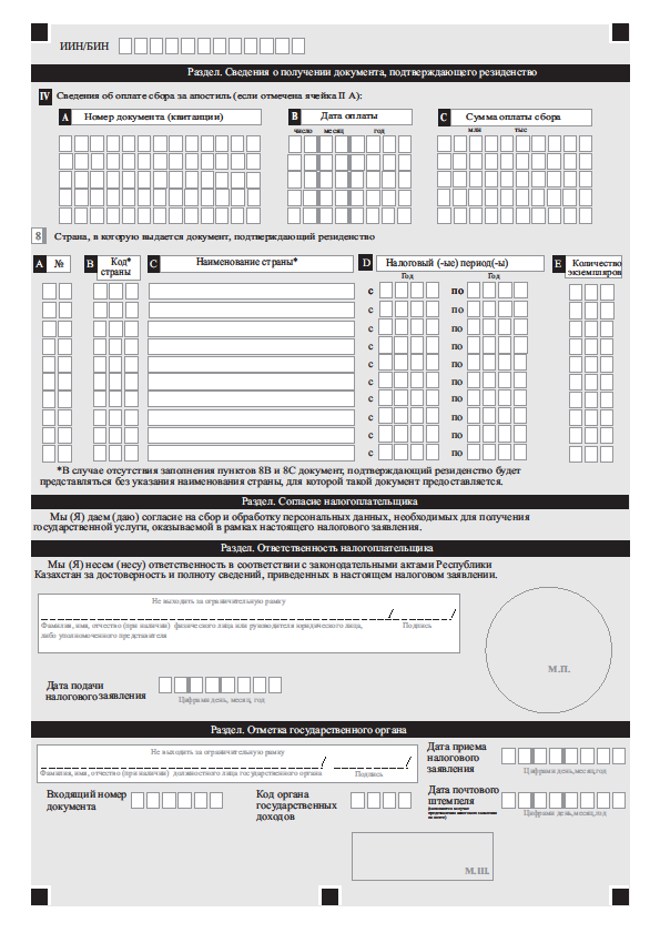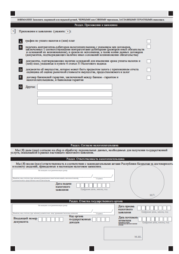 налоговое заявление по форме, согласно приложению к настоящему стандарту государственной услуги.