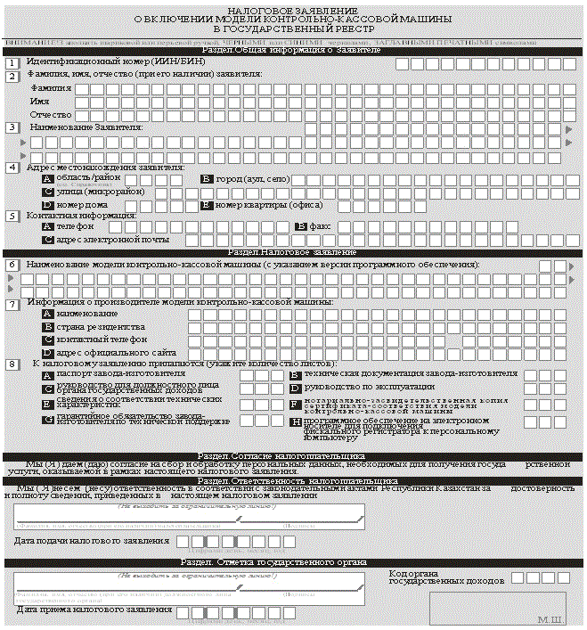 8) налоговое заявление о снятии с учета контрольно-кассовой машины в связи с ликвидацией юридического лица-резидента Республики Казахстан в упрощенном порядке;
