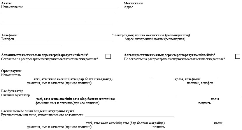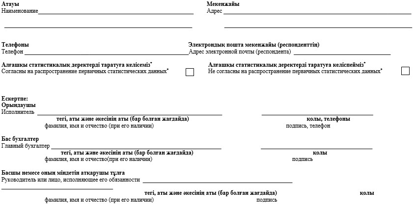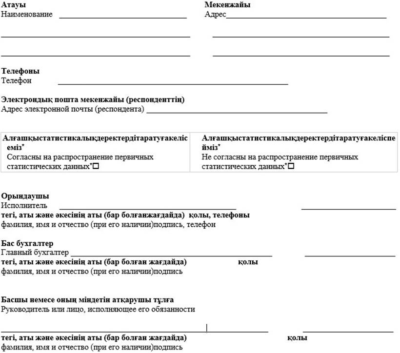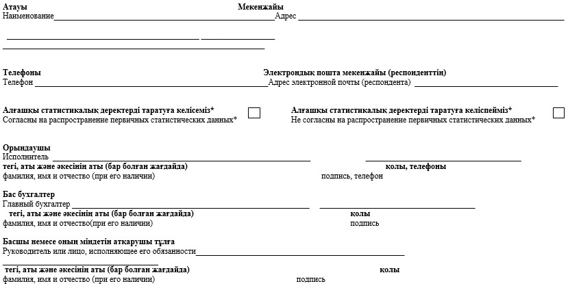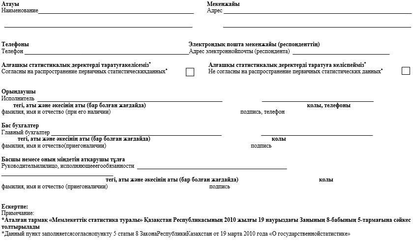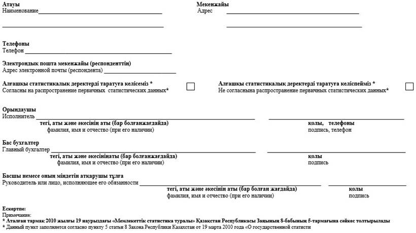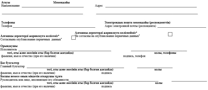 * Аталған тармақ 2010 жылғы 19 наурыздағы»Мемлекеттік статистика туралы» Қазақстан Республикасы Заңының 8-бабының 5-тармағына сәйкес толтырылады