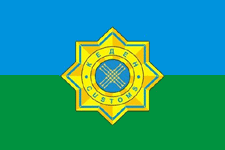Голубой цвет олицетворяет Государственный флаг Республики Казахстан, зеленый цвет - общепринятый международный знак государственных границ.
