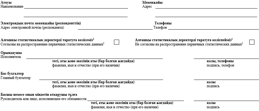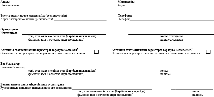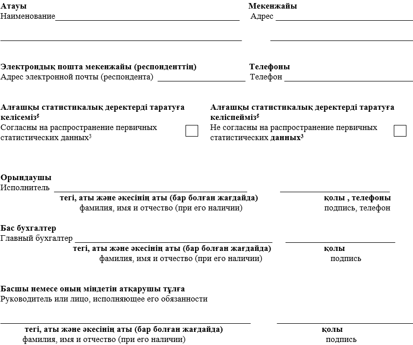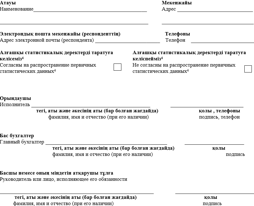 4Данный пункт заполняется согласно пункту 5 статьи 8 Закона Республики Казахстан от 19 марта 2010 года «О государственной статистике